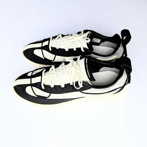 Adidas men size 12 1/2, white & black, mesh, lightweight and fashion-forward sneakers. The Adidas Yohji sneaker is built with mesh and suede, heel pull, EVA midsole, rubber outsole, offering a clean construction with breathable elements and a unique lacing system that goes all over the clean white upper. Gently Loved. Excellent Condition! Like New!