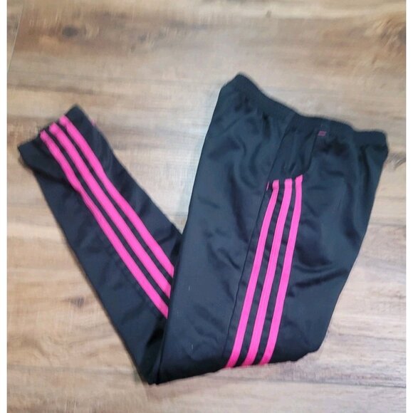 Adidas Youth 3-Stripe Active Jogger Pants Black Heathered Pink Stripe Size L-14
