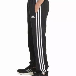 Adidas Youth Fleece Jogger Sweatpants Color: Black/ White stripes.