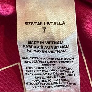 Great pre-owned condition youth girls size 7 Adidas pullover hoodie in pink and black. Sweatshirt features front pocket and white stripes on the sleeves. Beautiful contrast of colors with the pink, black and white.