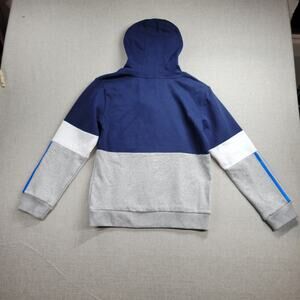 Adidas Youth Hoodie Size L 14/16 Navy Grey Spell Out Logo Fleece Pullover NEW