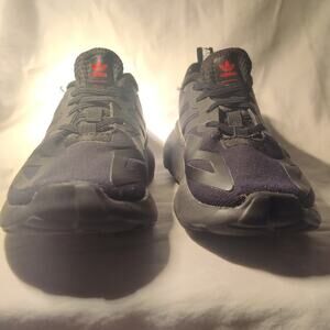 Adidas ZX 2K Boost black running shoes Kids size 9, in fair pre-owned condition. Minor wear on soles, but dirty. Some creasing consistent with typical wear. Elastic no tie shoe laces. Does not have the original box, shipped in a poly mailer.