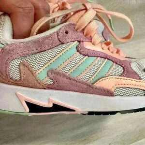 Adidas ZX Flux Kids Sneakers Size 11K Pink Mint Green Mesh Lace Up Athletic