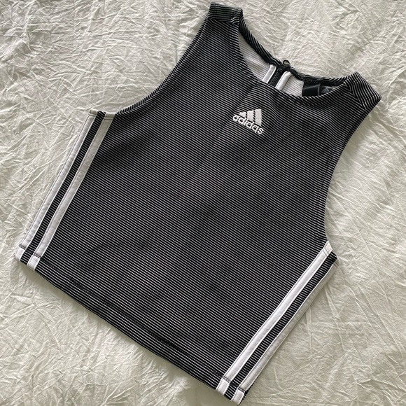 Adidas Zippable Ribbed Tank Black & white, zips up in back, slightly cropped fit as shown in photos