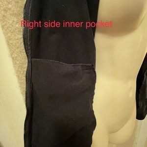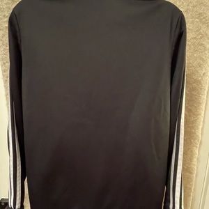 Authentic traditional three stripe, black, Adidas zip-up jacket. Inside pocket on each side. Full sleeve stripes front breast logo. Excellent condition. Barely worn.