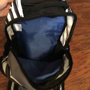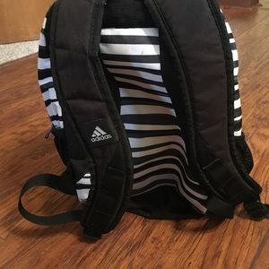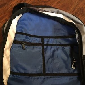 Blue, white, black and silver Adidas backpack. Used for one school year and originally bought for $65. It is a great backpack and it is in great shape. Shows a few signs of wear around the back corners but otherwise it looks really good!