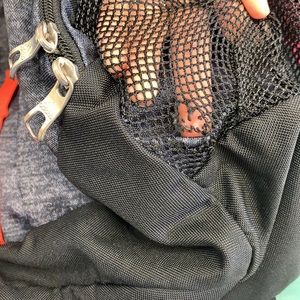 Adidas back back. Good condition. Has some small snags on bottom from sitting on floor and a small hole in bottle pocket on side. Lots of pockets