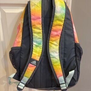 Approx 15Wx16Hx6D No holes or tears. Excellent condition. Big pocket has lap top pocket and there are 2 smaller front pockets. Side pockets for water bottles. Only thing wrong is it could use a washing.