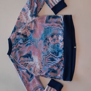 Adidas blue pink print track jacket size small 9 10. Excellent pre-owned condition. Smoke free pet friendly home. Please see pictures for measurements 9 10 small track jacket print pink blue Adidas