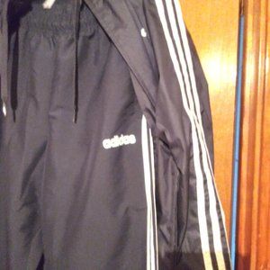 Adidas sweat suit, windbreaker material. Look cute while your being casual or working out. New condition.