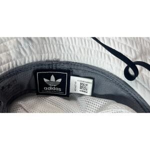 Get ready for sunny days with this stylish Adidas bucket hat! This hat features a classic white color with a bold black Adidas logo, making it a versatile accessory for any casual outfit. It's brand new, never been worn and has a tie-down strap for a secure and comfortable fit.
