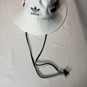 Adidas bucket Hat OSFM New no tags White with black logo and tie down strap