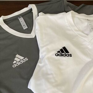 Two Adidas v neck jerseys, size mens small.