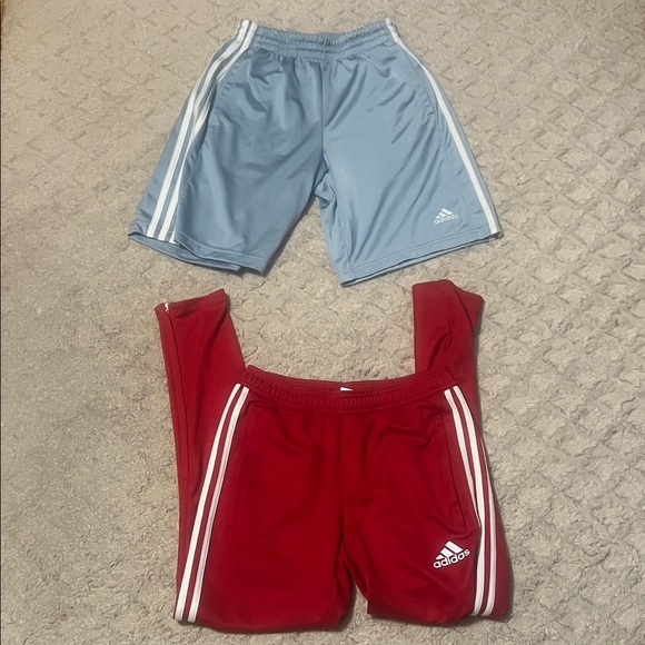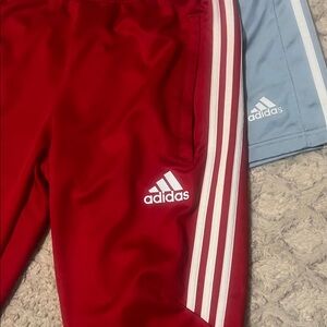 Adidas set featuring shorts and joggers both size men’s small small defect on red joggers shown in pic
