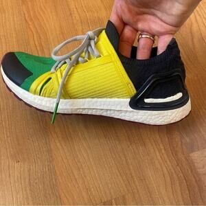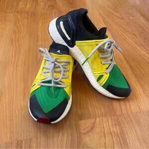 Adidas by Stella McCartney. Style G1568. Women's Ultraboost 20 running sneaker in size US 7.5 Colorblock in navy, yellow and Kelly green.