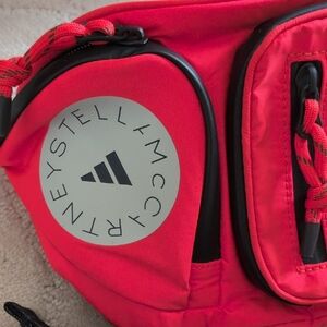 Bold belt bag with front zip pocket. Adjustable black strap. Stylish Adidas by Stella McCartney design. Bright orange color. Barely used!