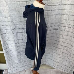 Adidas classic cotton blend pullover hoodie early 2000’s navy blue & white XL