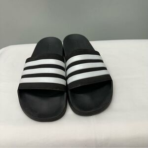 Adidas cloudfoam triple stripe black and white slides slip ons sandals men's 10