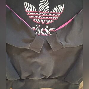 Adidas girls pullover sweatshirt Sz medium 10/12 zebra print trefoil