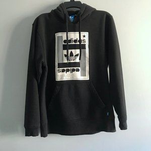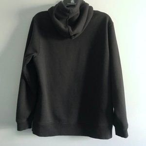 Thick hoodie with kangaroo pocket. Could maybe use a sweater shave because of the pilling from being loved.