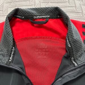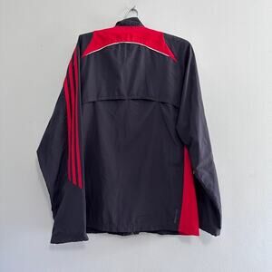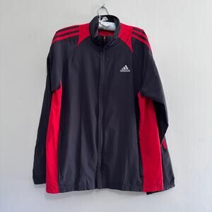 Adidas classic three stripe gray and red windbreaker, size tag has faded, but it measures like a size M, see measurements. Previously loved and in excellent condition. Non smoking and pet free house.