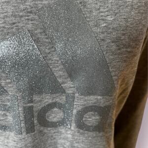 Adidas women’s size S, crewneck gray sweatshirt, with the word, Adidas on front in silver sparkle letters. Made of 70% cotton 30% polyester. Great condition!