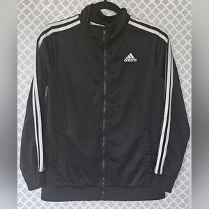 This is a kid LG 14/16 Adidas jacket. It's in great condition. the only thing I noticed was a small spot by the tag the thread us missing. as you can see in the pictures. The Adidas logo is sewed on, not ironed on, so you know that logo isn't going anywhere. lol. If you have any questions please don't hesitate to ask. Thanks for looking at my listing!