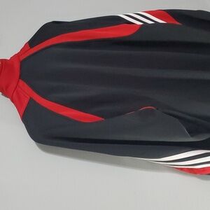 Adidas jacket men's size medium M black red white stripes Adidas logo y2k 100% polyester sharp cool looking 2000's y2k sweat jacket jacket sweatjacket zippered zipper zip zip pockets clean pocket