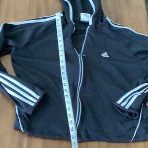 Adidas black & white striped jacket size L. Good condition. Matching pants also for sale