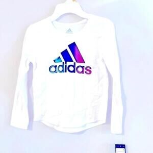 Adidas long sleeve Girls' Scoop Neck Graphic Tee white, long sleeve shirt size 6