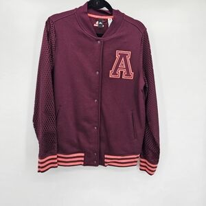 Adidas marron varsity button front track jacket women's size large