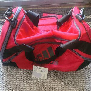BRAND NEW WITH TAG RED MEDIUM SIZE Dimensions: 24.75" x 12" x 13" 100% polyester Durable fabric with water-resistant base material Front zip pocket and end zip pockets Adjustable detachable shoulder strap with movable pad Dual carry handles with padded grip