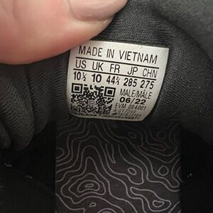 Stylish black and white athletic sneakers with green accents. Perfect for casual wear or sports activities. Size 10.5, very good preowned condition, smoke free home.