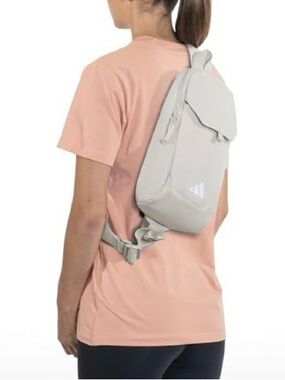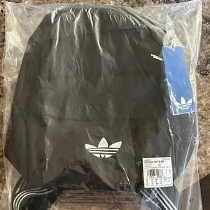 Sleek black backpack with a bold white Trefoil logo. Ideal for daily adventures.