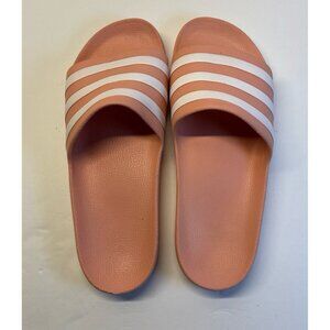 Adidas, pink and white slides women’s size 10 gently used smoke free, pet friendly home. These have been hand washed and air dried.