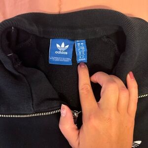 Adidas black small pull over, very warm, big pocket with access from both sides with zipper