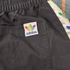 Like new Adidas rainbow shorts. Men's size medium. Waist stretches from 14-19 inches. In perfect like new condition.