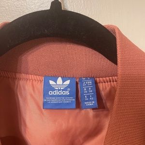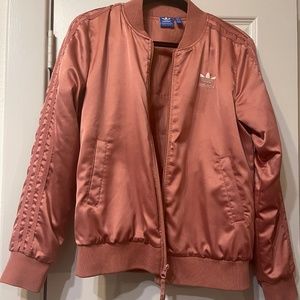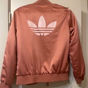 Adidas rose gold satin trefoil bomber jacket in Size Small
