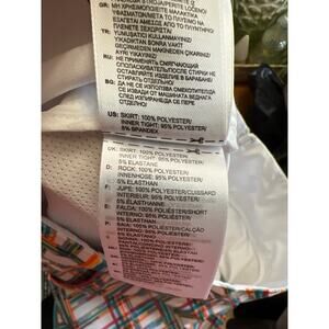 Adidas size 8 colorful golf skort in excellent condition. Zips on the side. Waist is 15 1/2” from armpit to armpit and it is 17 1/2” long.