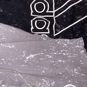 Size medium, black & grey colors. No rips flaws or holes. Has a front pre-knot detail at the front waist