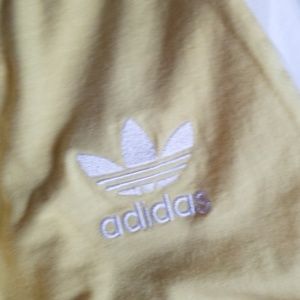 Yellow and white Adidas tee in size small.