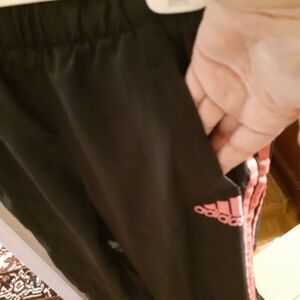 Adidas track pants. black with pink stripes. m l athletic athleisure comfort