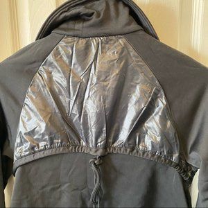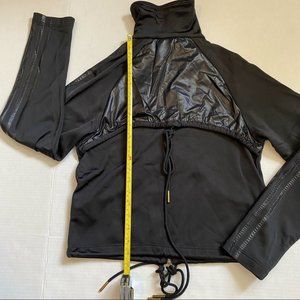 Adidas trefoil women’s full zip high neck track jacket satin 3 stripes drawstring back vent with drawstring pull.