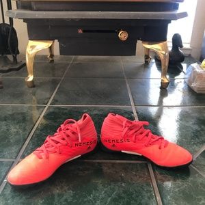 Practically brand new my son mayyybe wore them a few times. Great turf cleats minor wear. Beautiful hot orange color.