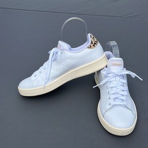 Adidas white leather sneakers with zebra back size 8 in great condition also has cloud foam comfort