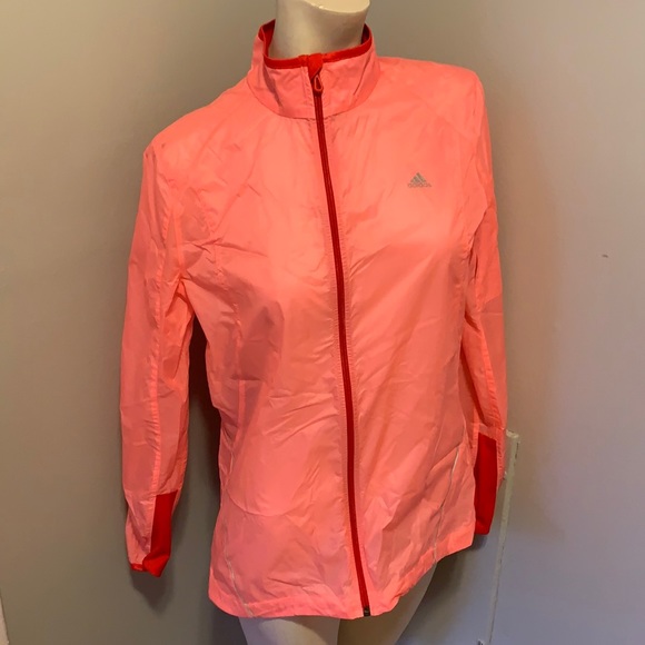 Semi sheer adidas windbreaker in size medium. The color is an peachy orange color and only worn once or twice and in great condition.