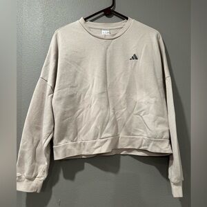 Adidas women's cropped sweatshirt, size M,cream color, relaxed style