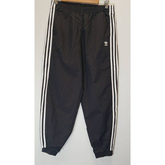 Adidas womens small nylon windbreaker pants black white wide leg baggy