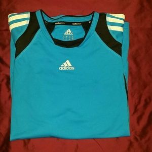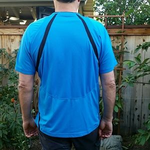 I'm wearing my Adidas workout shirt, ready to be sold. Make me an offer because my girlfriend prefers Nike.