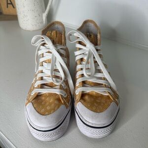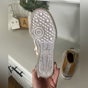 Step into the magic of Disney with these limited-edition Adidas x Disney Bambi sneakers! Featuring an adorable mustard yellow polka-dot upper, pink eyelets, and soft white Adidas stripes, these platform high tops showcase subtle design nods to the beloved Bambi character. A sweet collectible for any Disney fan or streetwear lover.